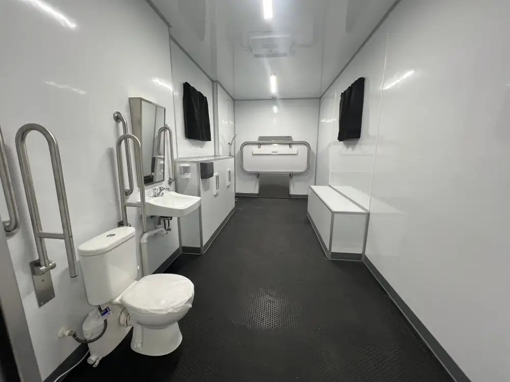 We offer shower and restroom trailers with both options for our customers. You can decide which customization you prefer. For example, some of our trailers offer large freshwater tanks onboard, whereas others have direct connections for city water or sewer hookups.
